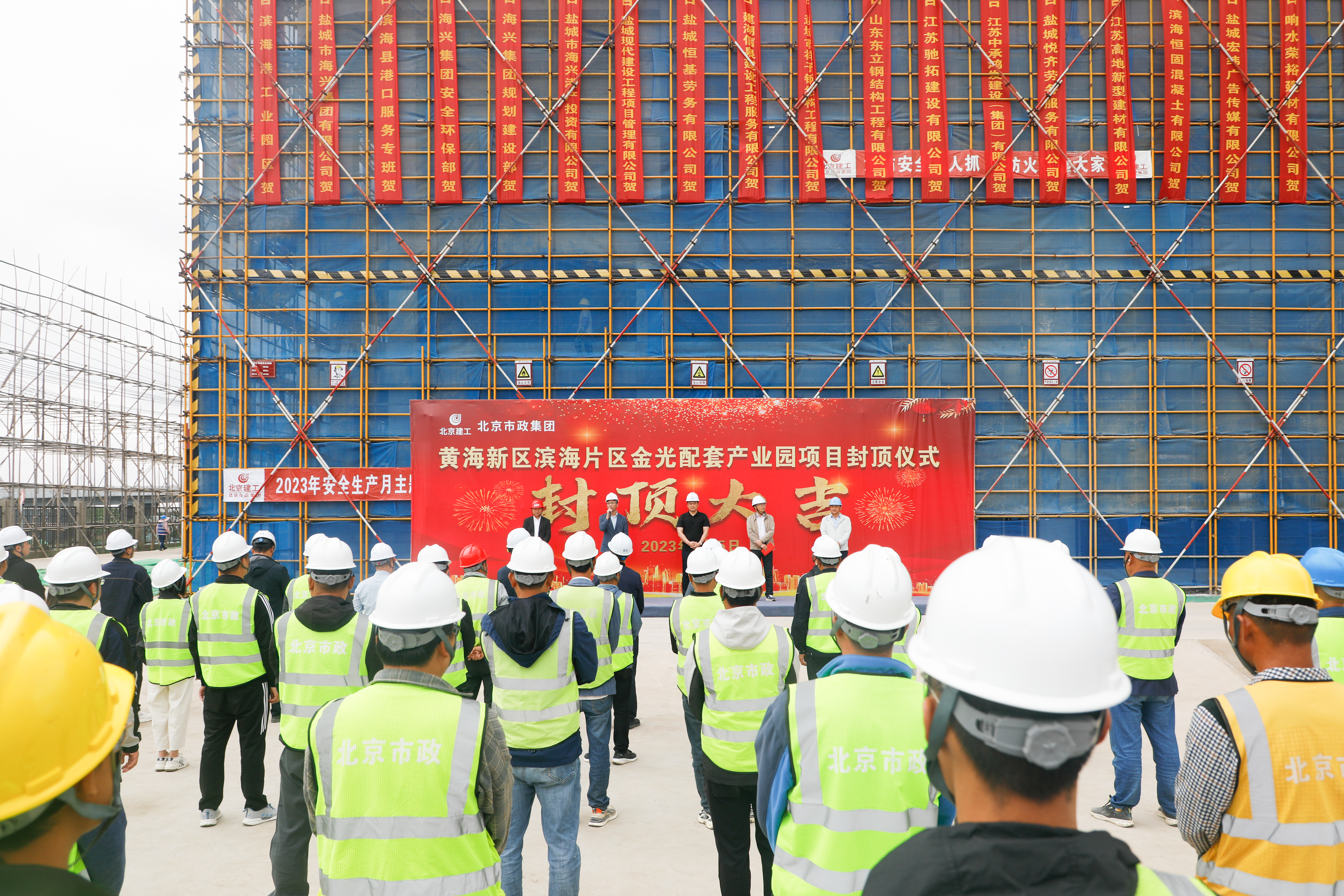 一線傳真 | 黃海新區(qū)濱海片區(qū)金光配套產(chǎn)業(yè)園項(xiàng)目首棟廠房順利封頂