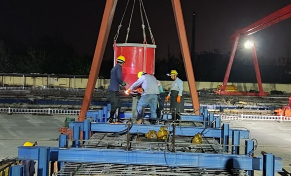 9月7日凌晨完成疏港航道大橋首件預(yù)制箱梁澆筑,為大橋段上部結(jié)構(gòu)施工進(jìn)度達(dá)序時(shí)做好堅(jiān)強(qiáng)保障。2022-09-07 -
